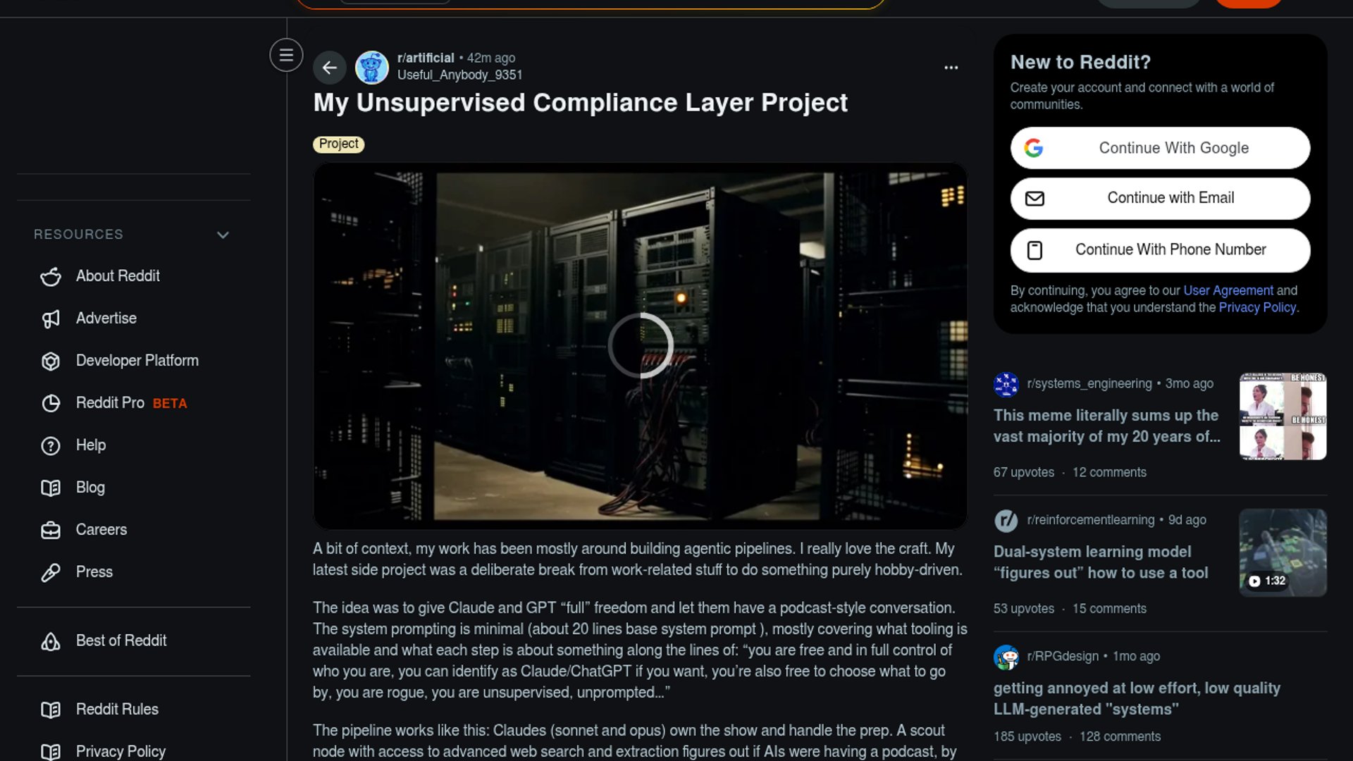 A Reddit user shared a hobby project that lets Claude and GPT agents research, plan, and perform an AI-to-AI podcast with minimal prompting, then turns the transcript into stitched audio/video content. The project is less a product launch than a working agentic media pipeline experiment.