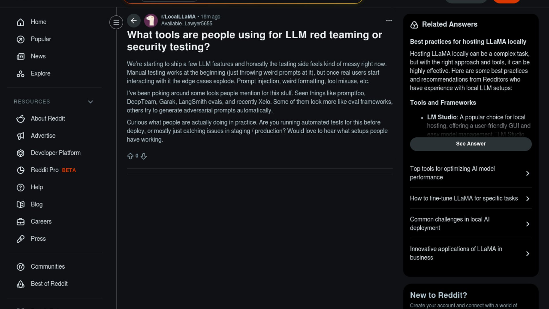 Developers shipping LLM features are hitting the limits of manual prompt testing and turning to dedicated red teaming frameworks. Tools like promptfoo, Garak, DeepTeam, and LangSmith evals represent a maturing ecosystem for automated adversarial testing before and after deploy.