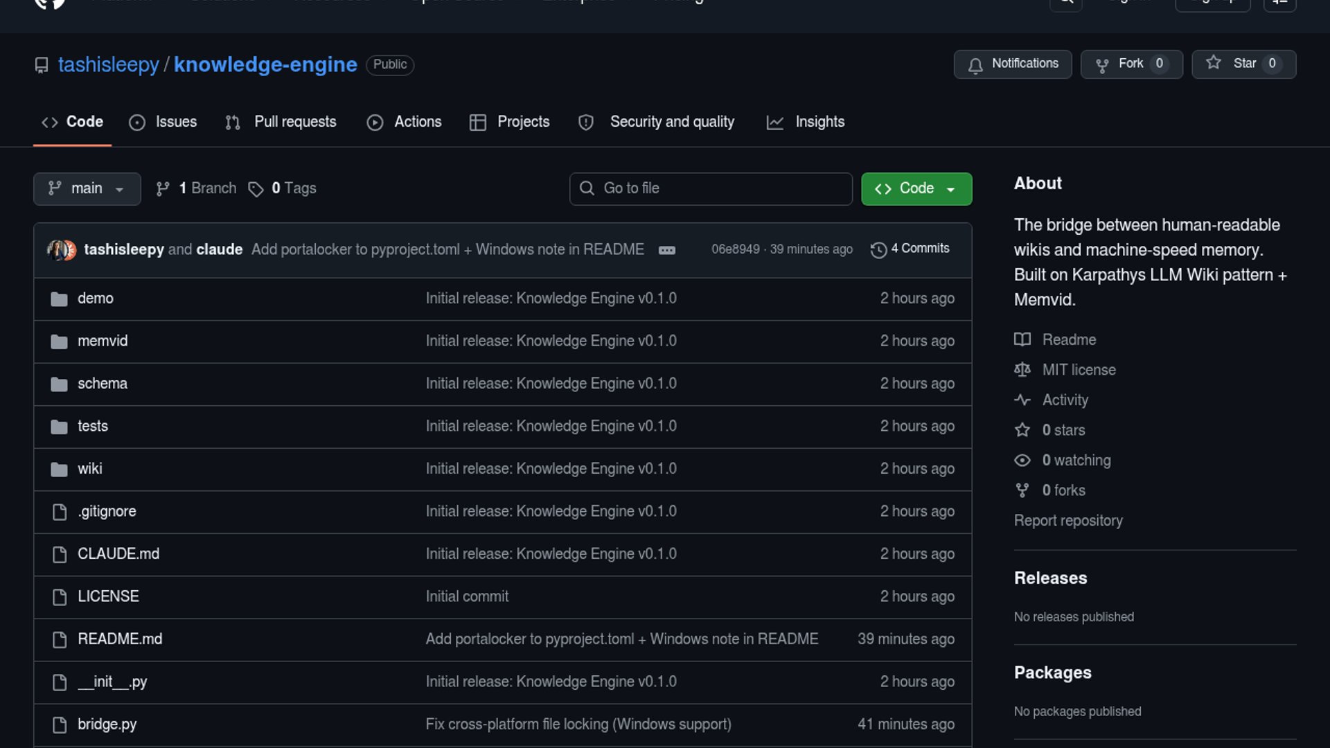 Knowledge Engine is an open-source Python bridge that ingests documents into two synchronized outputs: an Obsidian-compatible markdown wiki for humans and a Memvid `.mv2` memory layer for machine-speed search. The project emphasizes content hashing, drift detection, and a no-infra workflow that keeps the wiki and memory archive aligned as the corpus grows. It is pitched as a pragmatic upgrade path: the wiki is enough for small collections, while Memvid becomes useful once grep and manual navigation start slowing down larger knowledge bases.