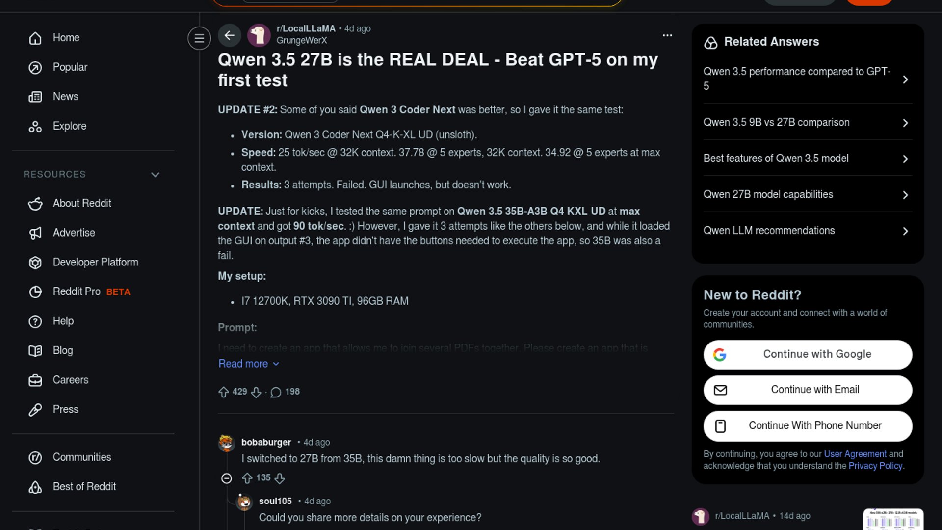 - –Community discussion around Qwen3.5 shows real enthusiasm for local deployment speed and cost efficiency, especially on 3090/4090-class hardware and Apple Silicon