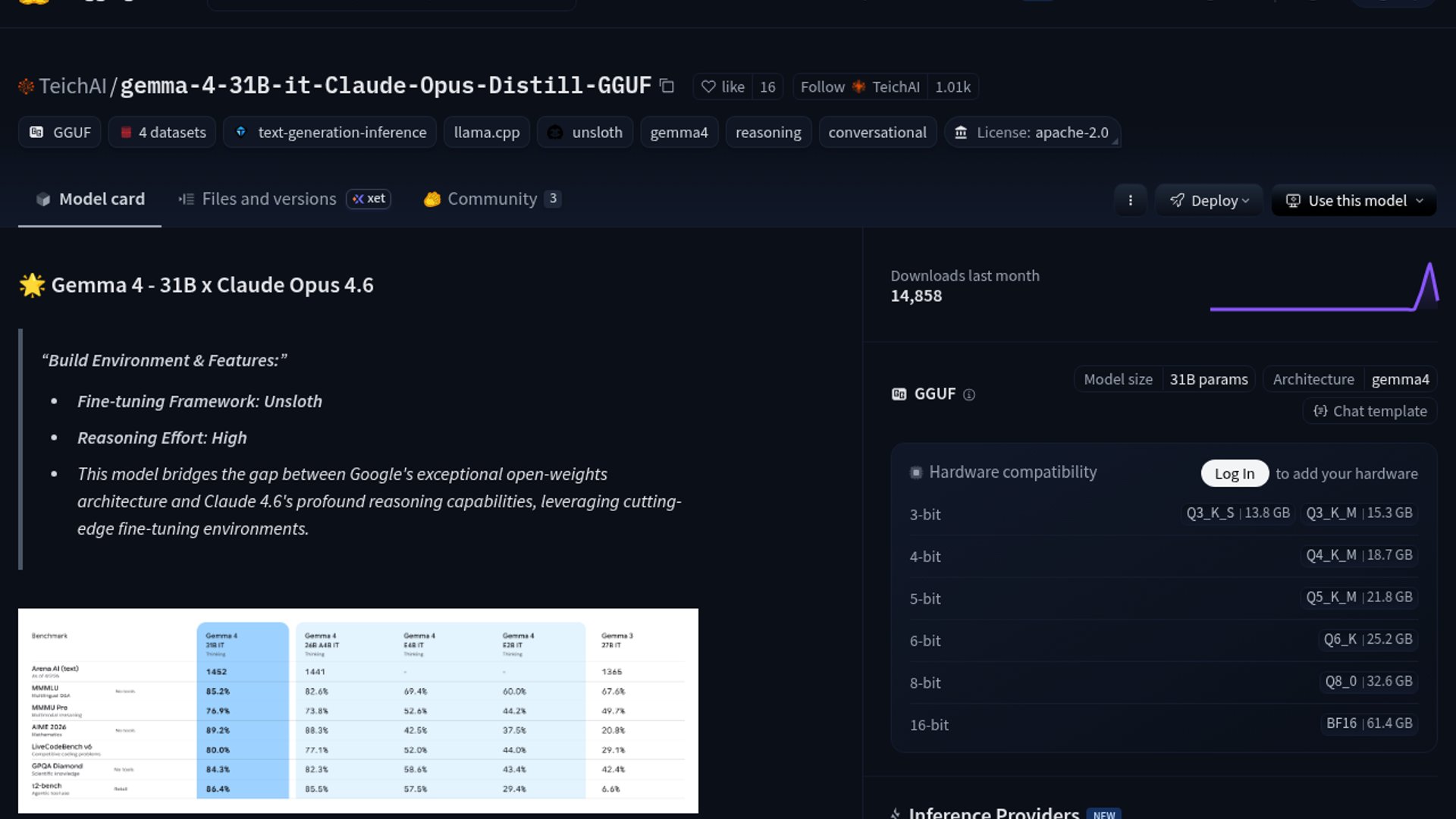 TeichAI has released a GGUF quantization of Gemma 4-31B, fine-tuned with reasoning trajectories distilled from Claude 4.6 Opus. This local model brings frontier-level coding and reasoning capabilities to consumer hardware like the RTX 5090.