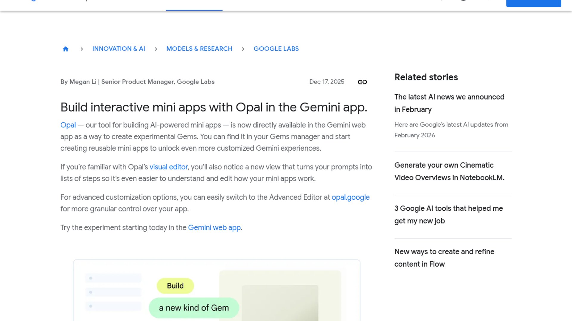 Google is bringing Opal, its no-code builder for AI mini apps, directly into the Gemini web app as an experimental way to create reusable Gems. The move turns Gemini from a chat surface into a lightweight workflow builder with memory, routing, chat, and media-generation capabilities.