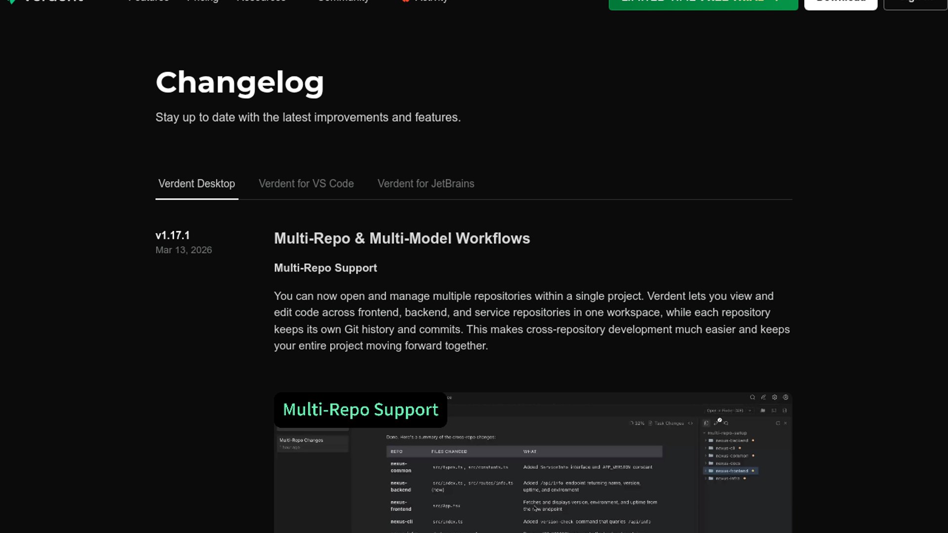 Verdent, an agentic AI coding platform that runs multiple AI models in parallel across isolated git worktrees, has shipped v1.13.0–v1.14.2 adding consensus-based planning across models, a one-click Skills Marketplace, and proactive Next Action recommendations to reduce task stalling.