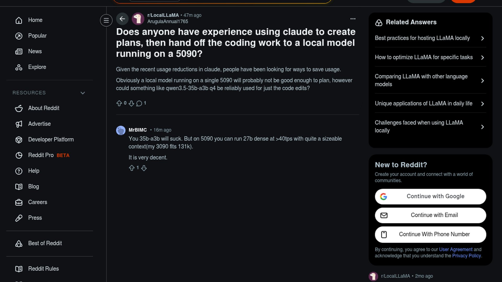 Reddit weighs Claude planning, local code edits
