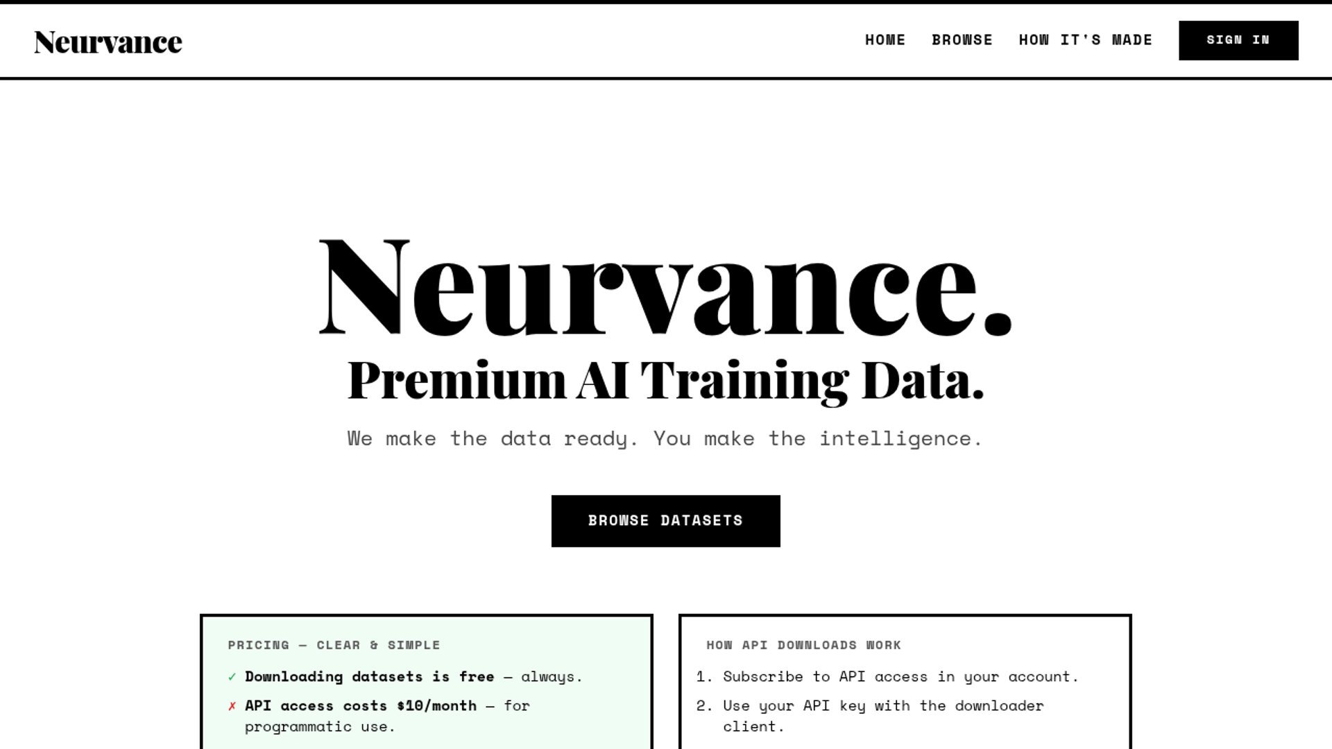 Neurvance is a new platform for fine-tuning datasets that aims to remove most of the boring prep work: cleaning, deduping, formatting, and syncing data into training pipelines. Manual downloads are free, and the API adds bulk access plus incremental pulls for teams that want a more automated workflow.