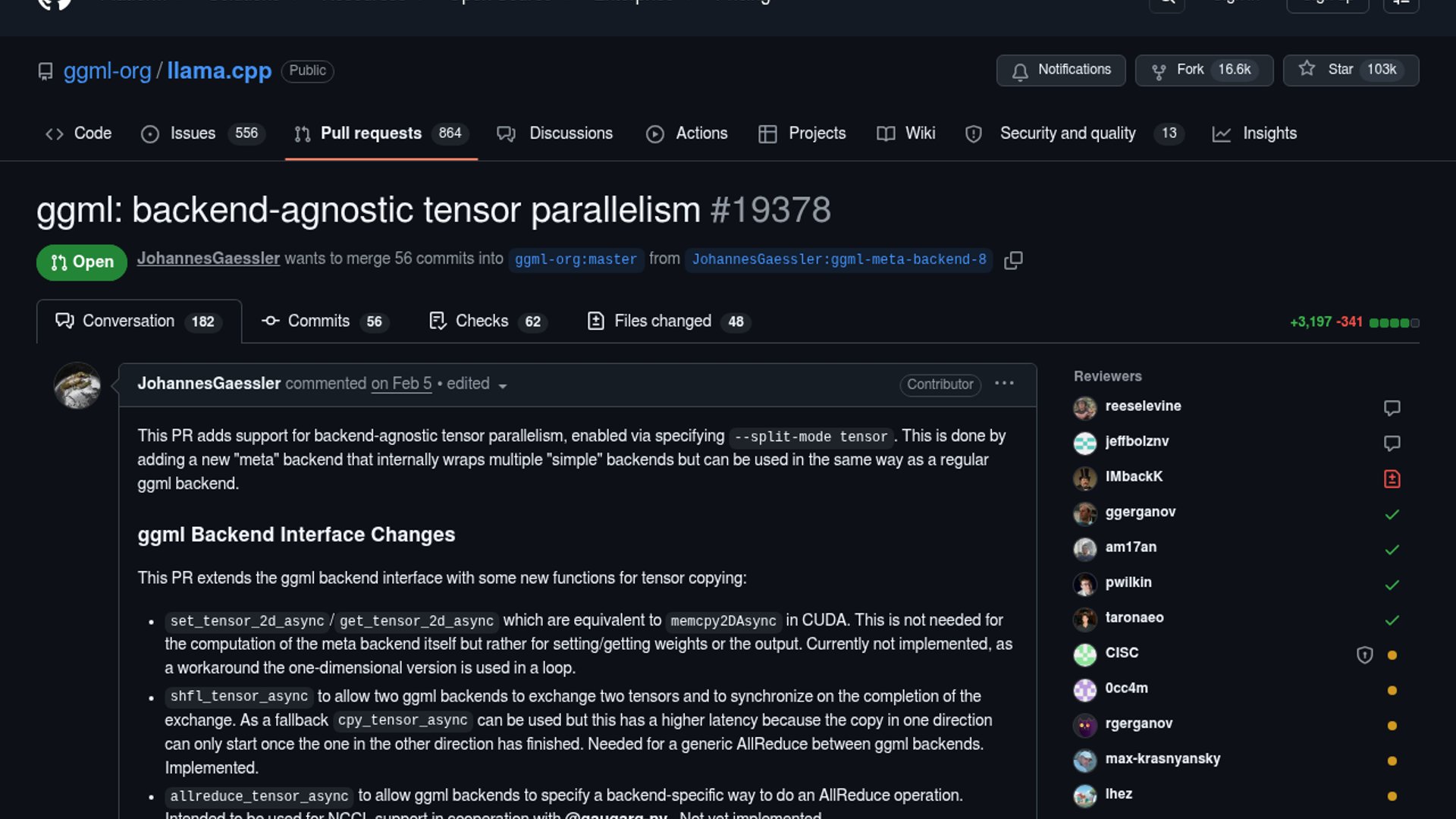 A Reddit thread points to approval of PR #19378, which adds backend-agnostic tensor parallelism to llama.cpp. If it holds up in practice, the runtime gets a cleaner path to scaling inference across multiple devices without hard-wiring one backend.
