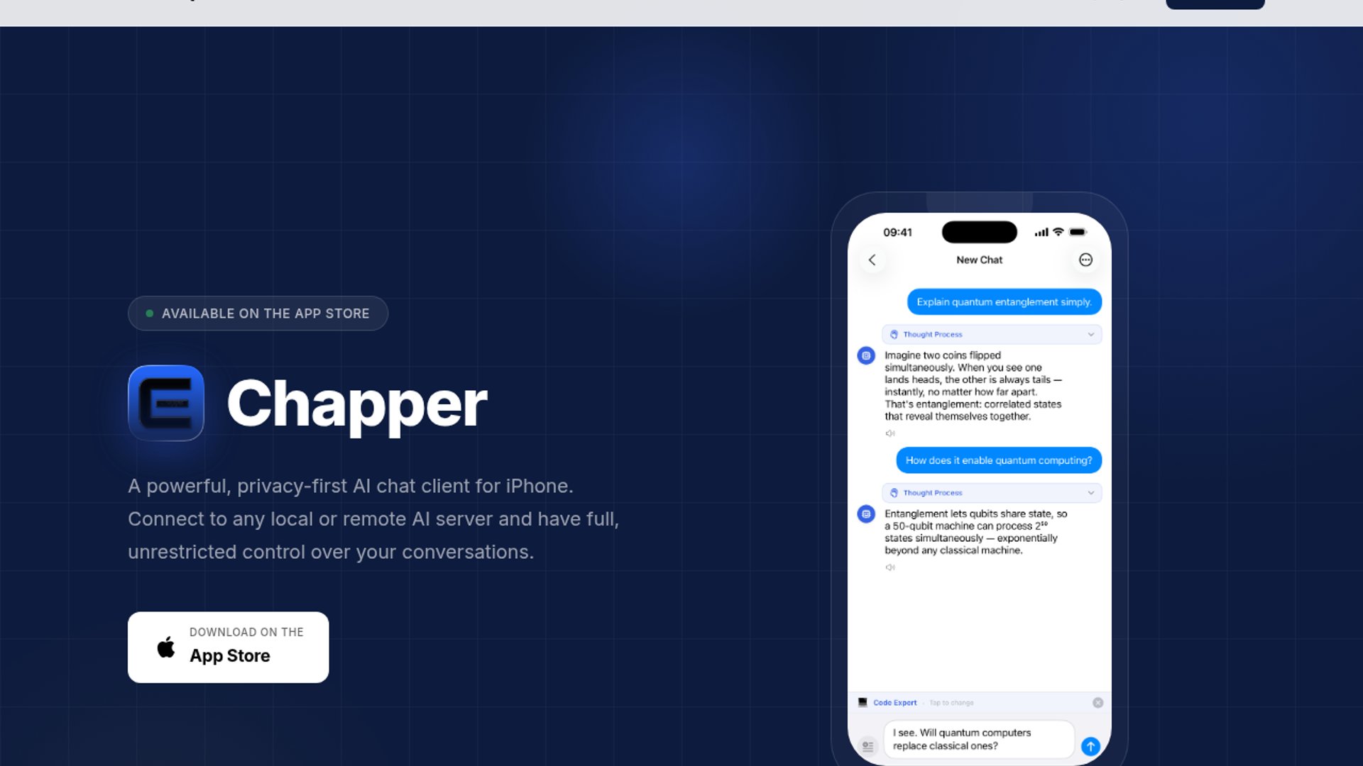 This is a strong “make local AI feel native on mobile” launch, and that matters because most LLM clients still treat iPhone as an afterthought. Chapper’s feature set is broad enough to be a real daily driver, not just a remote-control wrapper for desktop models.