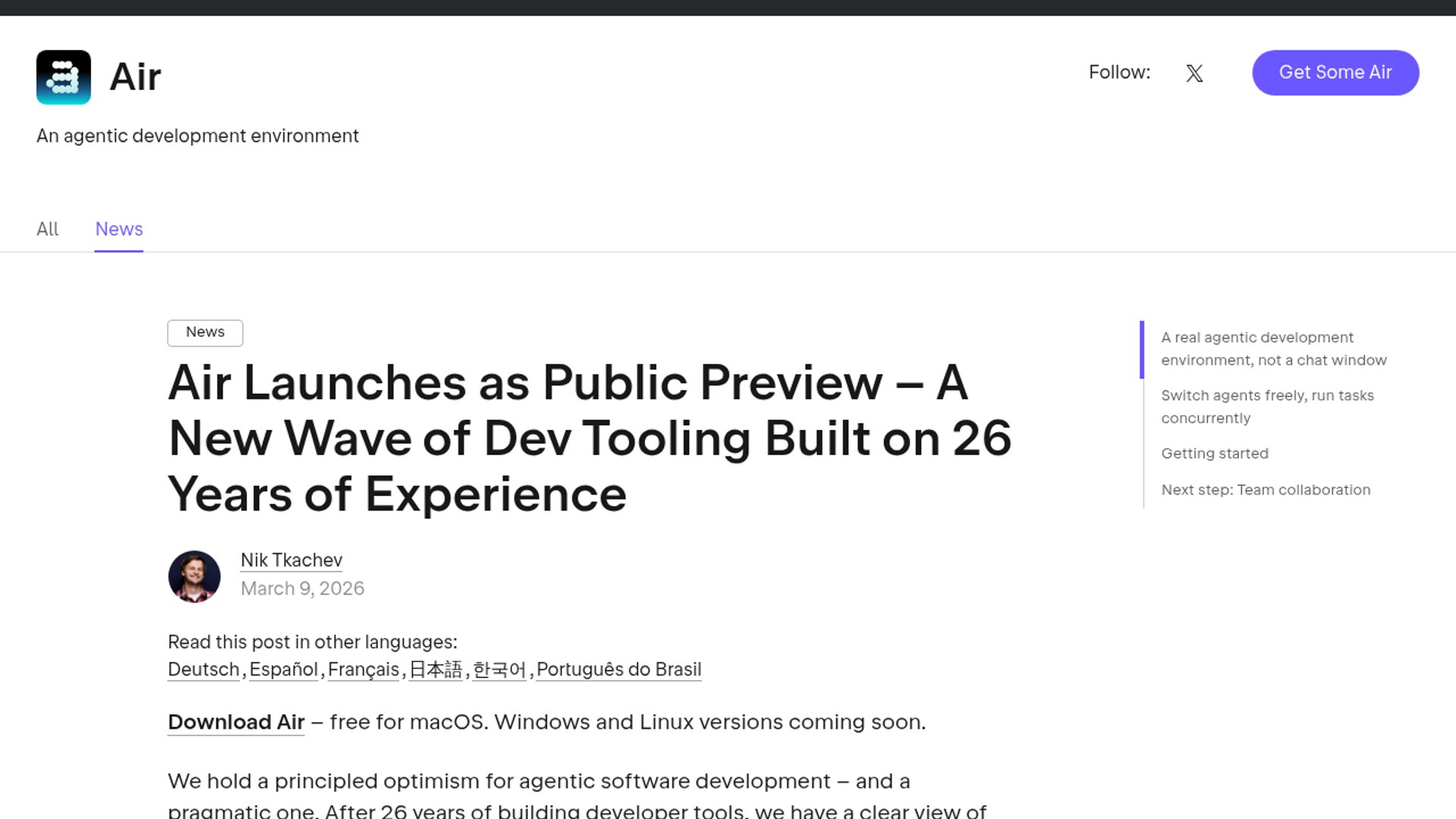 - –Supporting Codex, Claude Agent, Gemini CLI, and Junie in one product positions Air as a neutral control plane rather than a single-model bet.