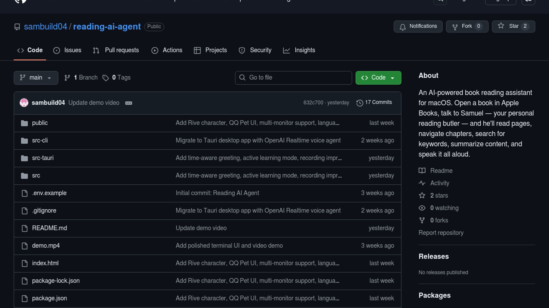 Samuel is an open-source macOS reading assistant that can take over Apple Books, turn pages, search inside a book, summarize passages, and read them aloud. It uses OpenAI’s realtime and computer-use stack, so the demo is as much about agentic desktop control as it is about narration.
