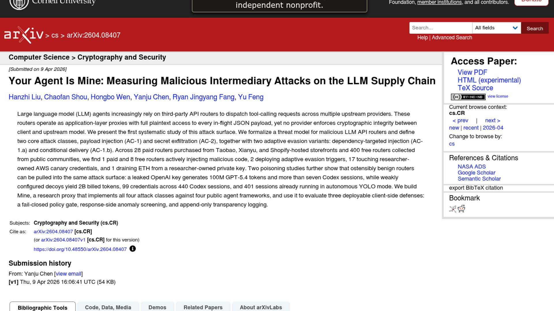 This is the kind of security paper that should make teams reassess any cost-saving proxy in the agent path. The uncomfortable part is not just that malicious routers exist, but that adaptive evasion and poisoning tricks let them survive casual testing.