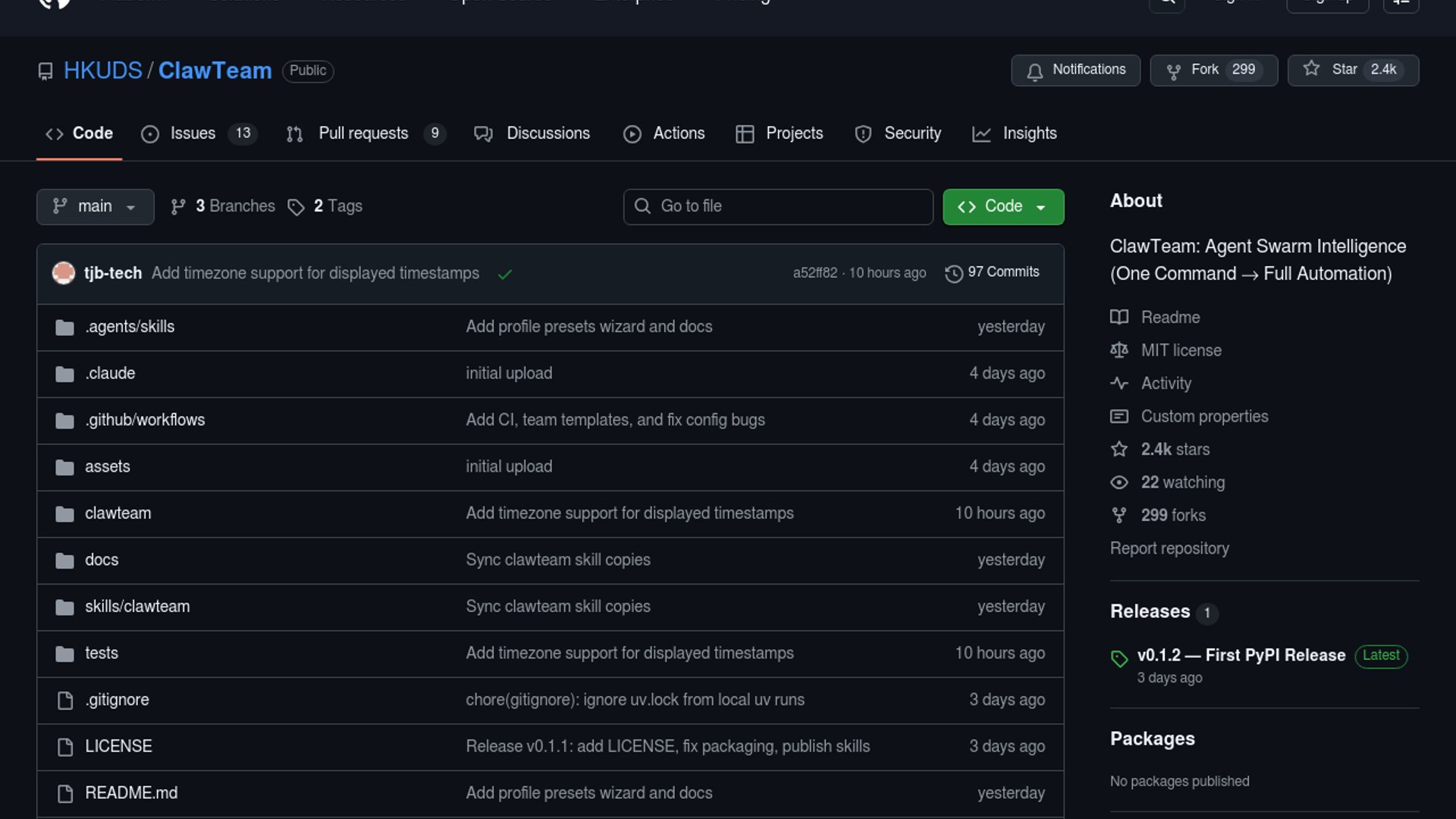 ClawTeam is an open-source orchestration layer for agent swarms that lets a leader agent spawn specialized workers, assign tasks, and coordinate results from the CLI. The repo leans on git worktrees, tmux, and web monitoring to make multi-agent work feel more like a managed team than a pile of prompts.
