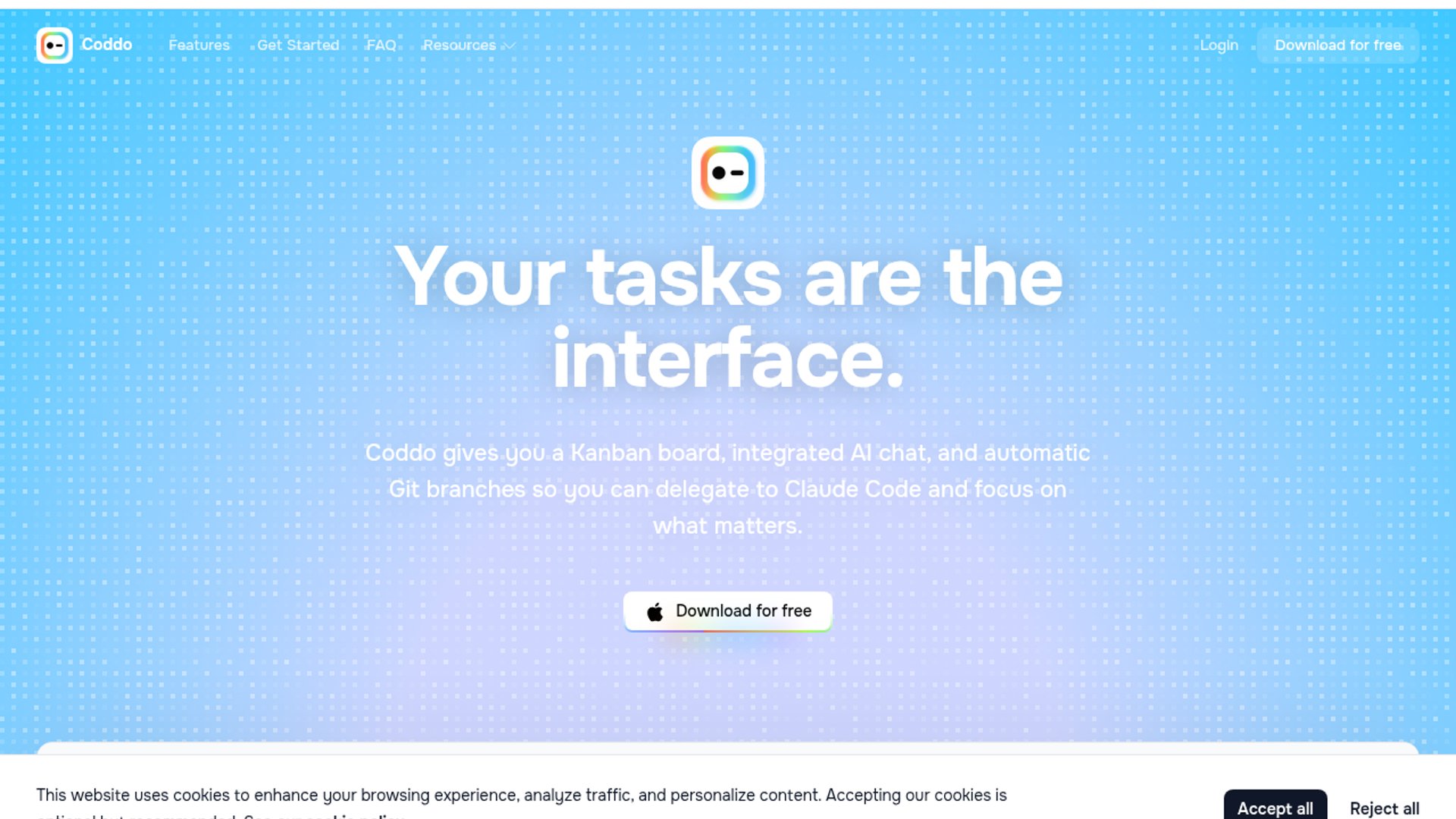 Coddo reimagines AI-assisted development by abandoning the traditional IDE interface for a visual Kanban board powered by Anthropic's Claude Code. Instead of navigating files, developers define discrete tasks while Coddo automatically manages Git branches and delegates execution to the AI agent.