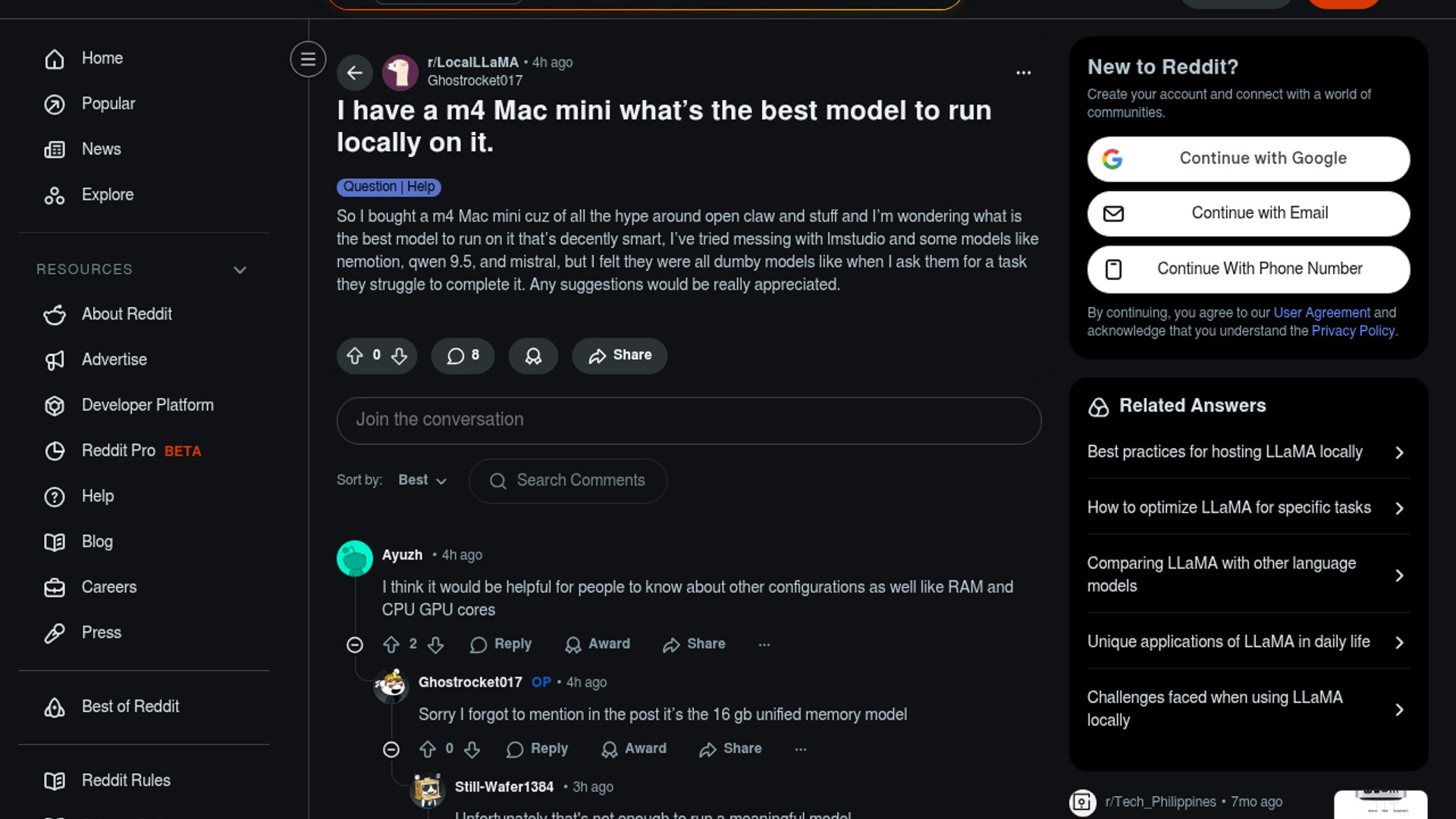 A Reddit user with an M4 Mac mini asks for recommendations on the best local model to run, saying the models they tried in LM Studio, including Nemotron, Qwen, and Mistral, felt too weak for real tasks. The post is essentially a hands-on request for model-selection advice on Apple Silicon, with the focus on finding something that can complete instructions reliably rather than just generate fluent text.