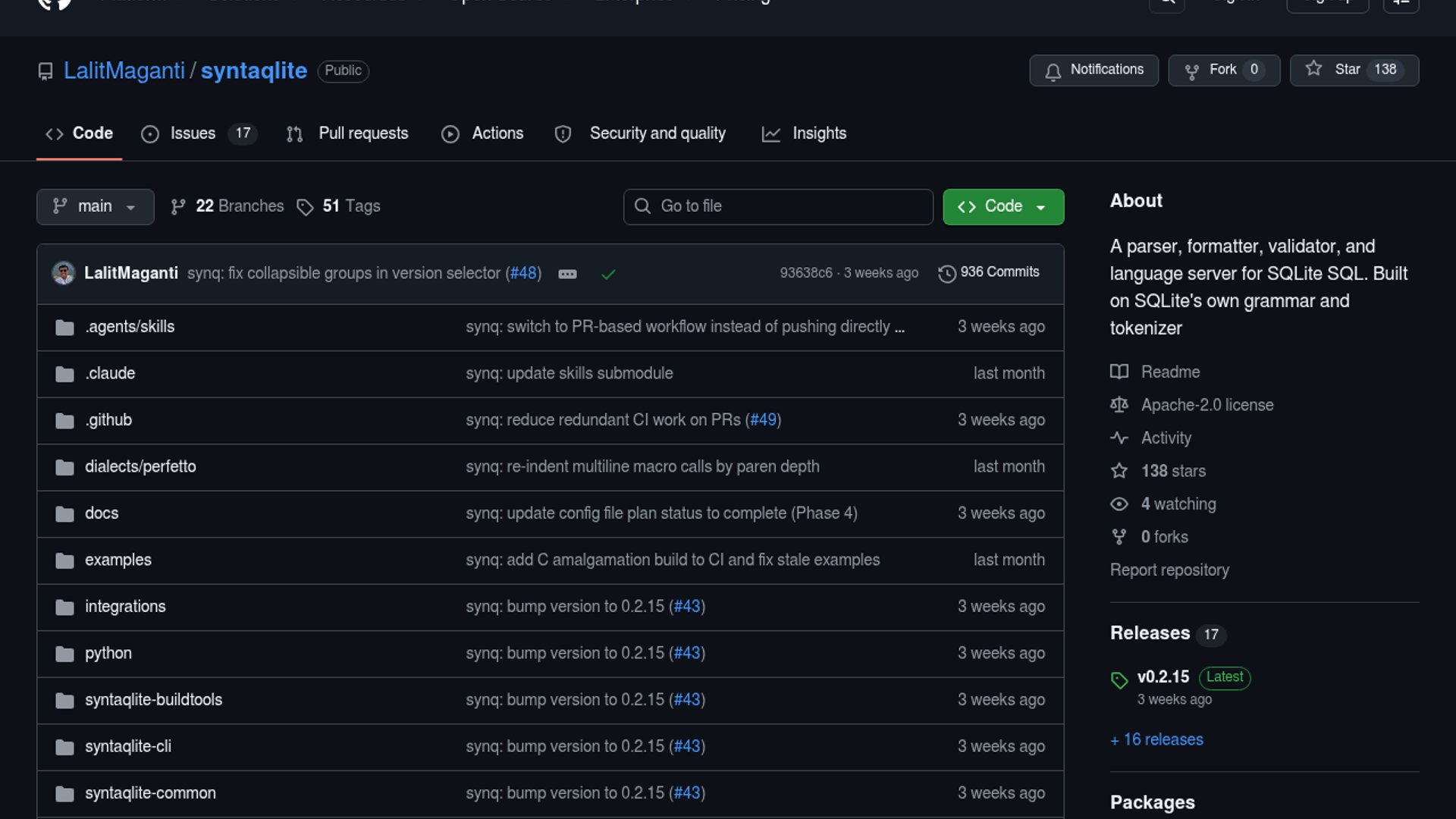 syntaqlite is a new open source SQLite devtools stack that aims to deliver accurate parsing, formatting, semantic validation, and editor/LSP support for SQLite and compatible dialects. In this essay, Lalit Maganti describes how AI coding agents helped him finally build the project after years of wanting it, first through a fast but messy prototype and then through a full rewrite in Rust with tighter human oversight and stronger testing. The result is positioned as high-fidelity tooling for SQLite users rather than a Perfetto-only internal helper.