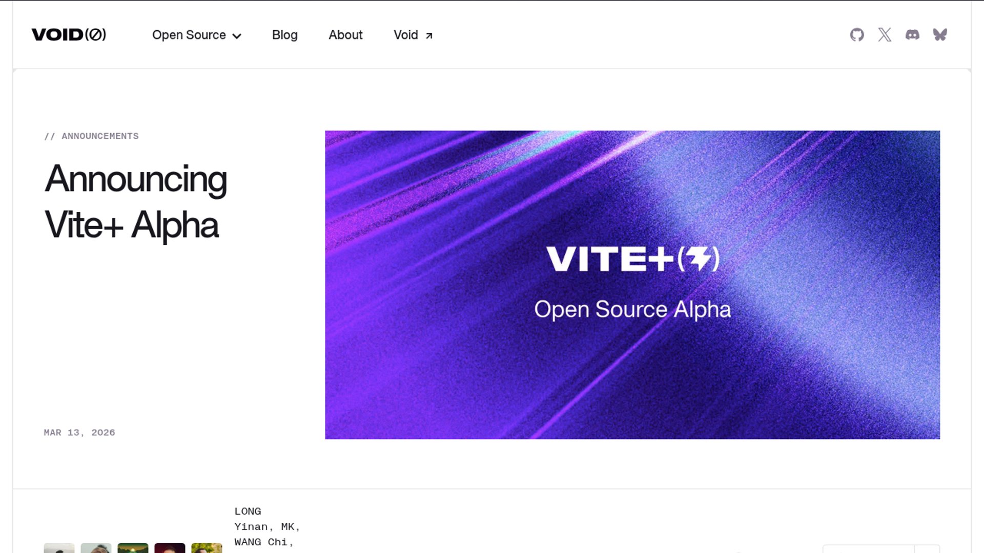 VoidZero released Vite+ Alpha and open-sourced it under MIT, packaging runtime management, package installs, dev server, linting, formatting, testing, builds, and task running into a single vp CLI. The release positions Vite+ as an all-in-one web workflow layer built on Vite, Vitest, Oxc, Rolldown, and related Rust-powered tooling.